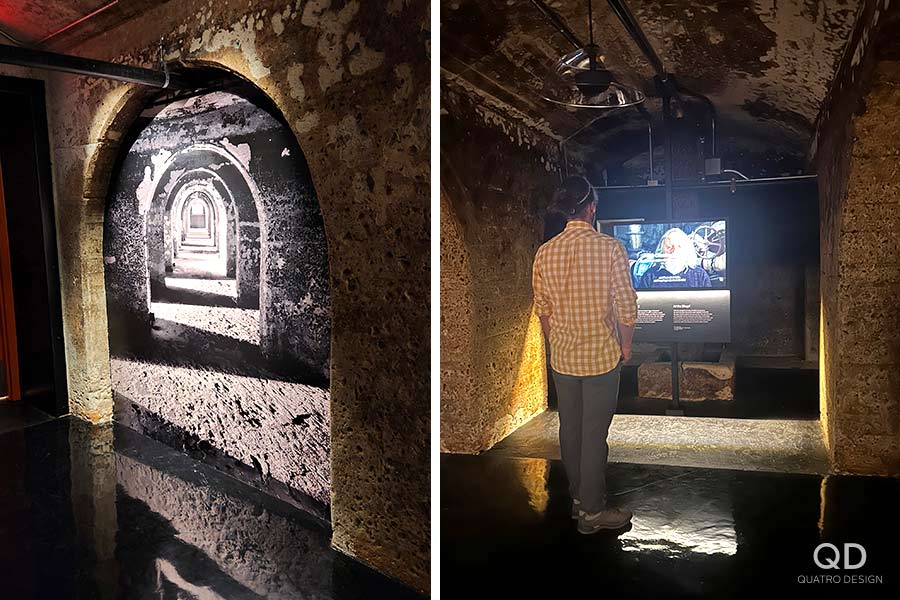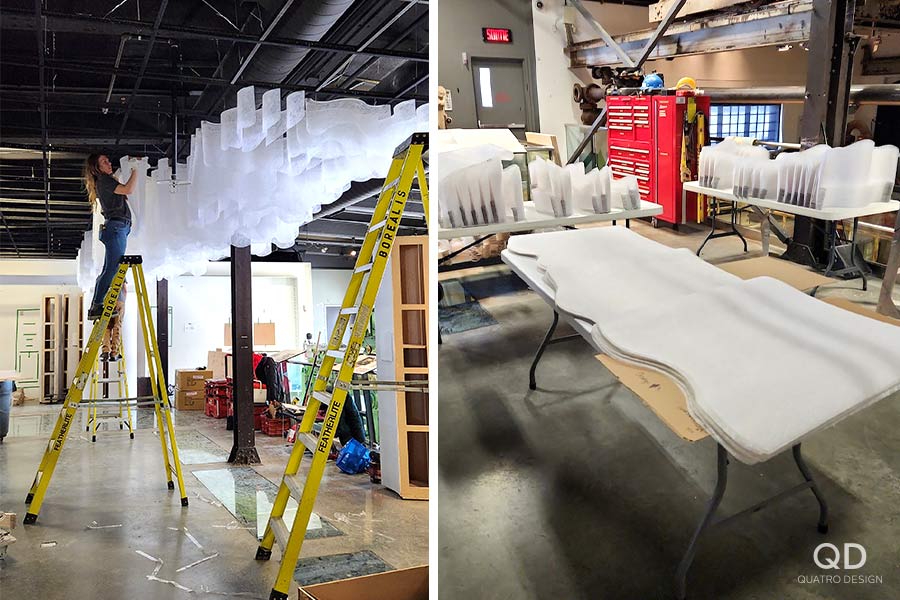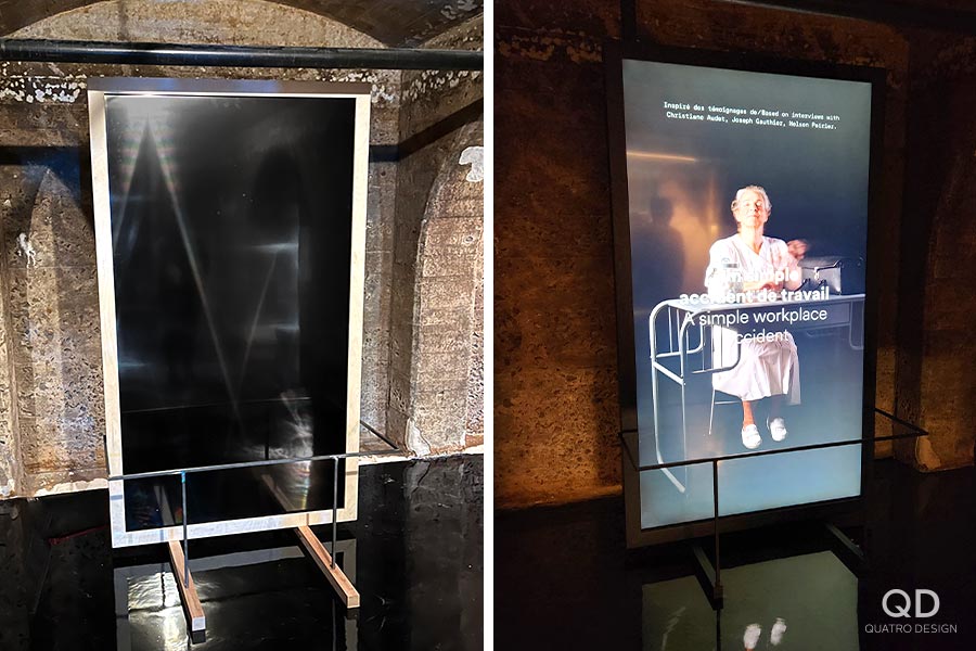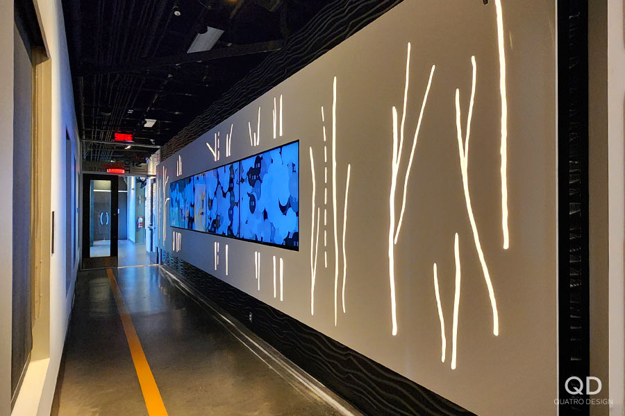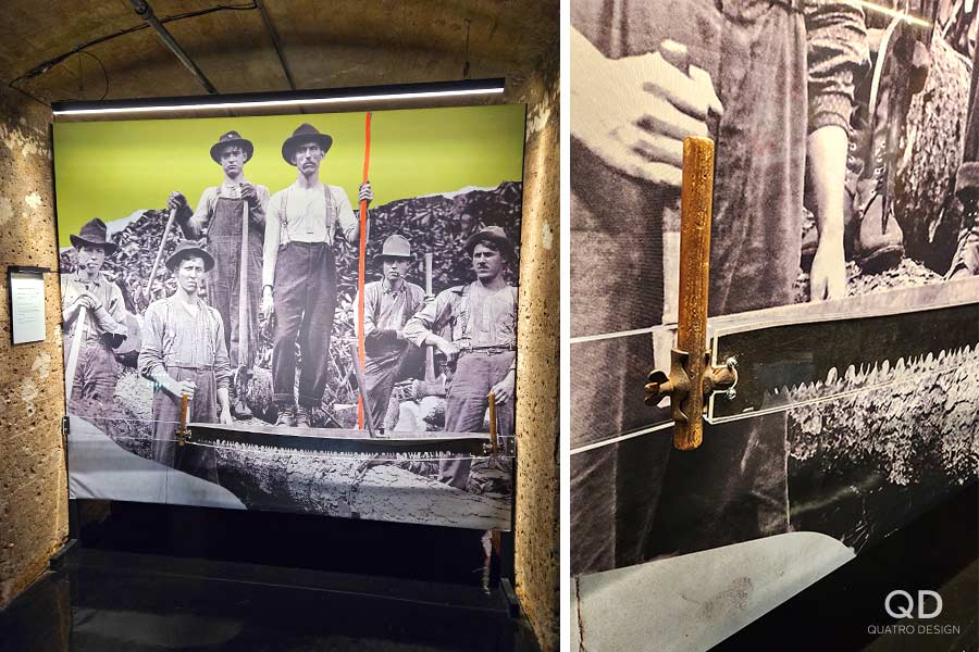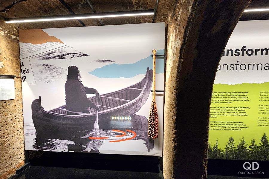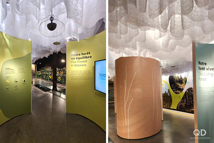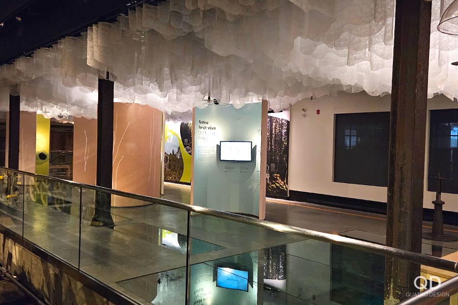 Nous avons réalisé plusieurs éléments pour cette exposition permanente du musée Boréalis de Trois-Rivières. Outre des cadres, des modules, des supports et des panneaux divers, un des plus grands défis fût la « canopée », cette section de l’exposition où une multitude de tissus en vague sont suspendus au plafond. C’est après plusieurs prototypes que nous avons pu développer le processus de fabrication et d’installation idéal. Une fois l’éclairage installé, le résultat est vraiment impressionnant!