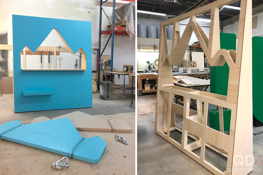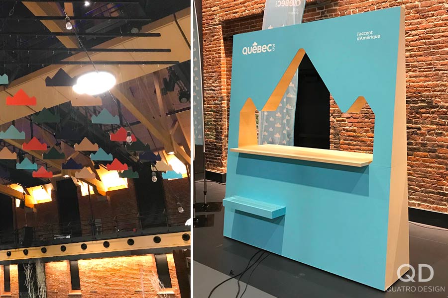 Parfois la sobriété est de mise, d’autres fois c’est l’éclaté qui a sa place! Nous avons réalisé ce comptoir de promotion amusant pour un événement où l’emblème était la couronne. Notre découpeuse numérique nous permet de tailler les pièces aux formes insolites.