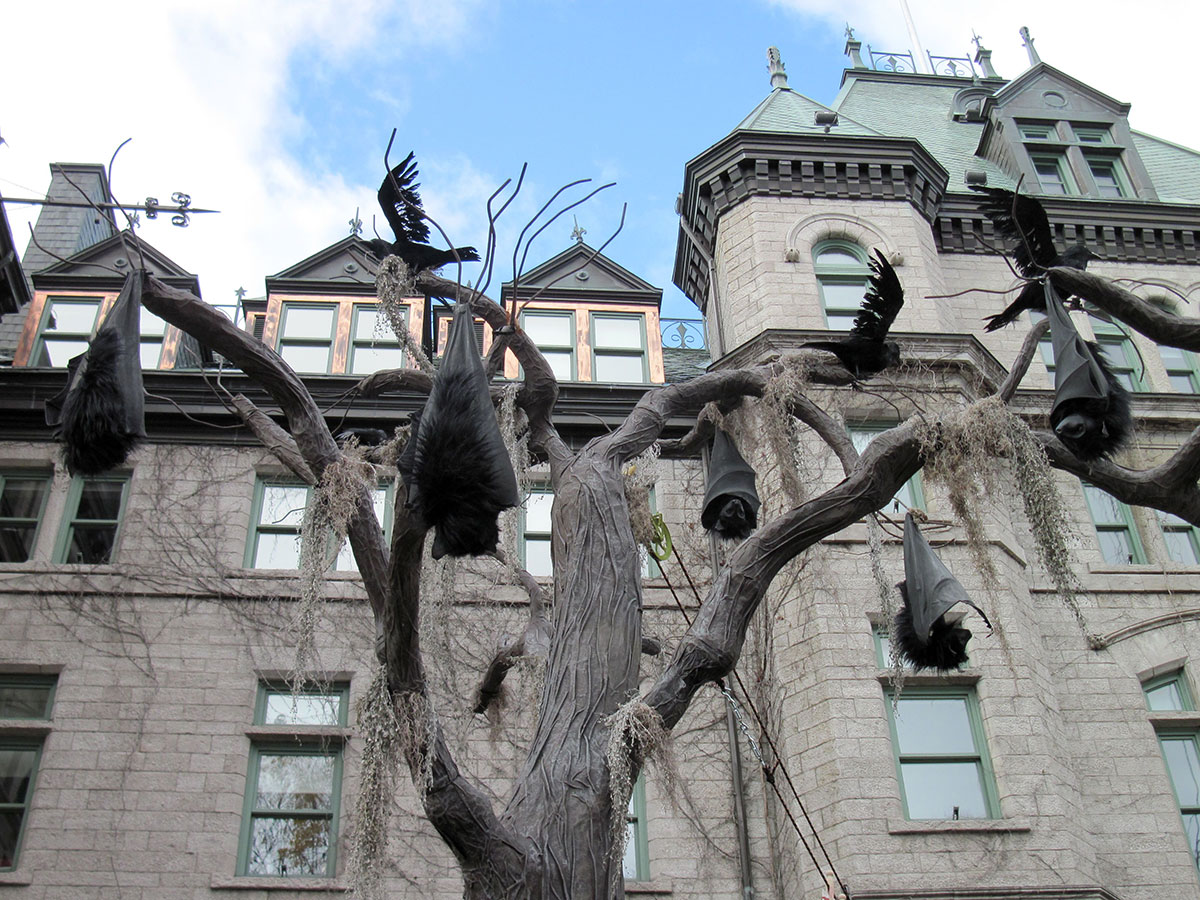 L’historique des décors d’Halloween avec la Ville de Québec a débuté en 2010. Diverses techniques artistiques ont été utilisées pour la fabrication  des citrouilles, des chats, des chauves-souris, de l’arbre et des visages des personnages. Pour le plus grand plaisir de tous, le décor à l’Hôtel de Ville de Québec se réinvente chaque année grâce à la polyvalence des éléments réalisés.