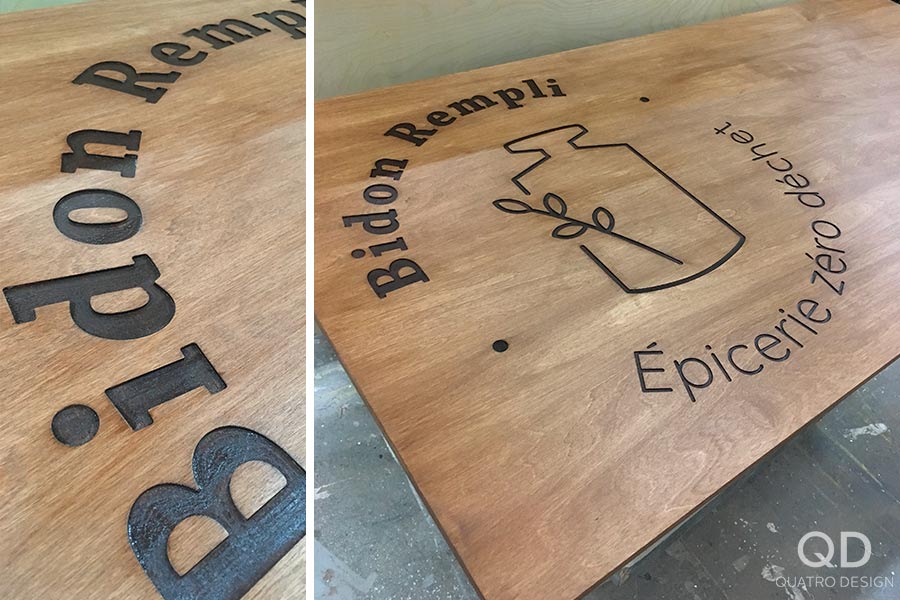 Une belle essence de bois, quelques gravures et une teinture qui a du style : parfois cela suffit pour donner un effet époustouflant. Nous sommes équipés pour travailler toutes les matières de mille et une façons. Nous trouverons celle qui vous convient.