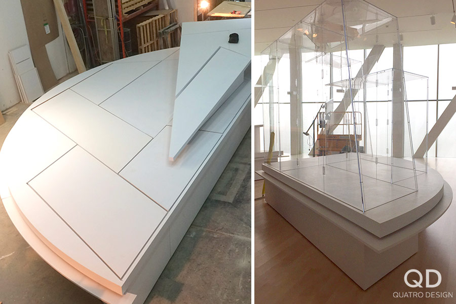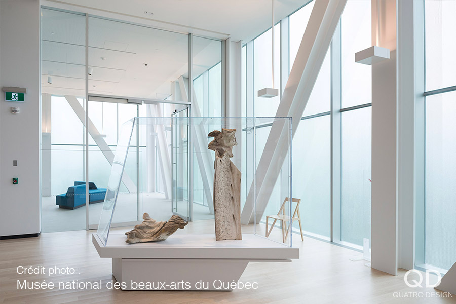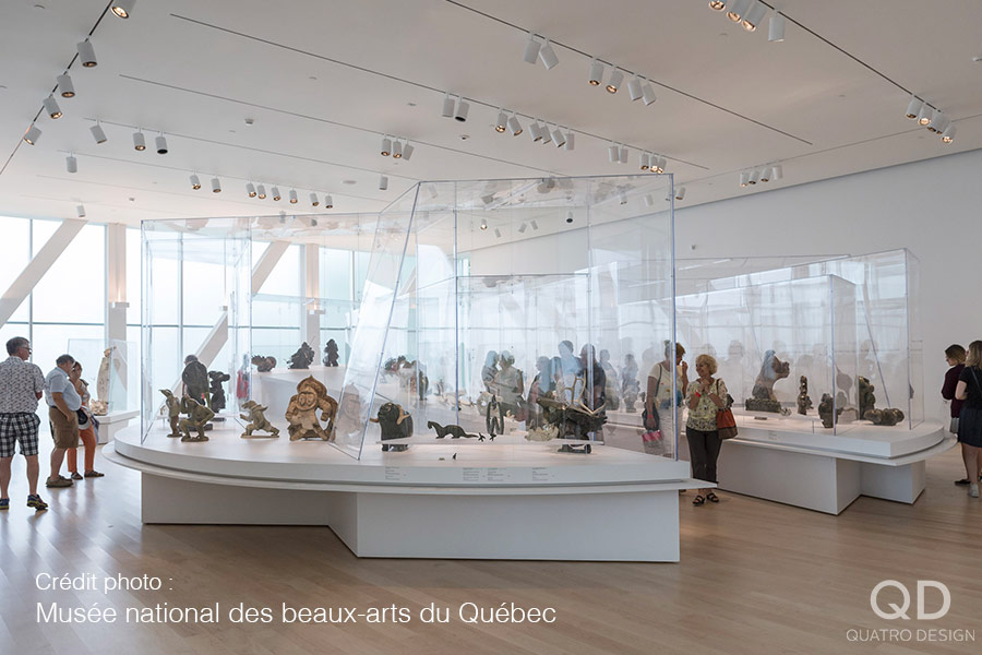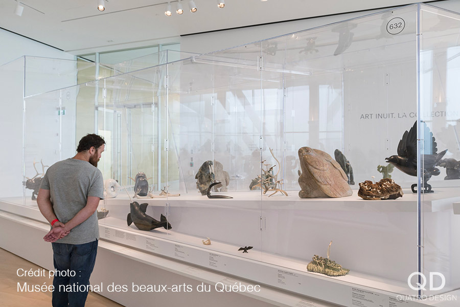 Art Inuit, un projet d’envergure qui n’aurait pu voir le jour sans la découpe numérique. Tous les socles et comptoirs taillés d’une grande précision s’emboîtent pour former de grandes scènes géométriques. Nous avons également collaboré de très près avec notre fournisseur d’acrylique pour fabriquer les multiples vitrines de taille démesurée. Bravo au Musée national des beaux-arts du Québec pour ce concept à la fois épuré et extravagant.