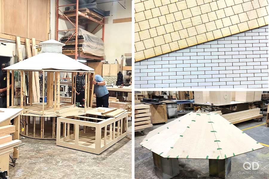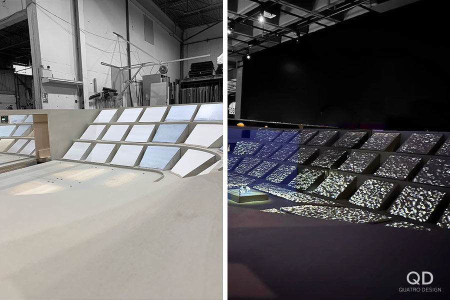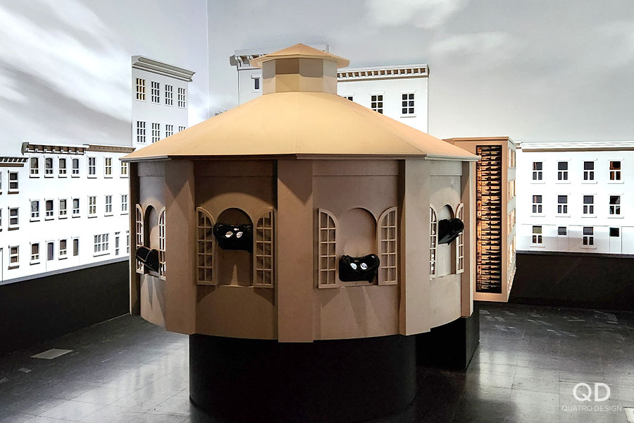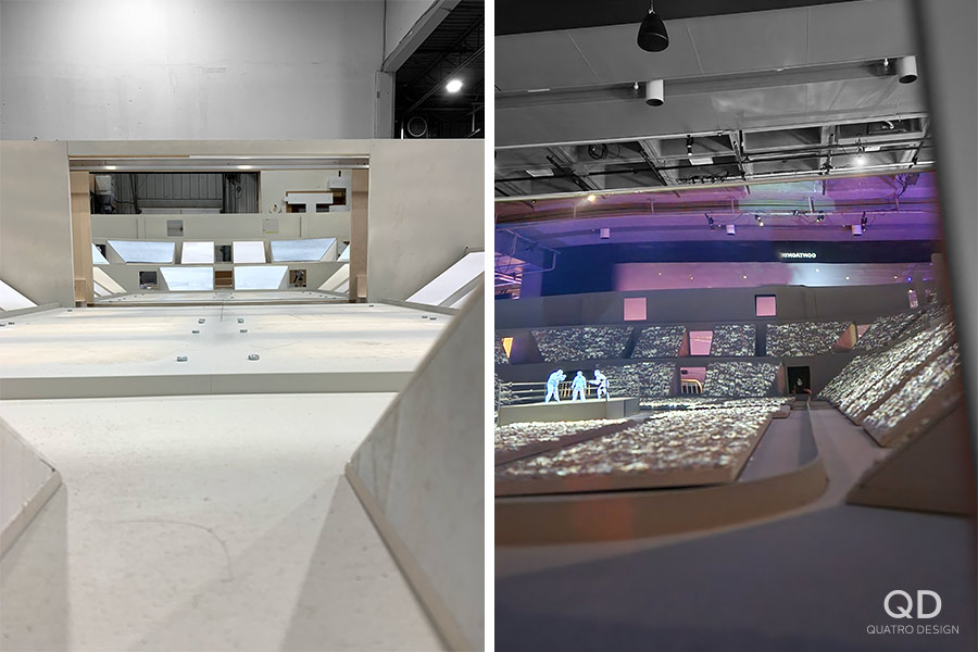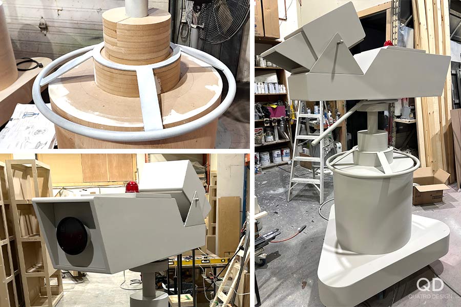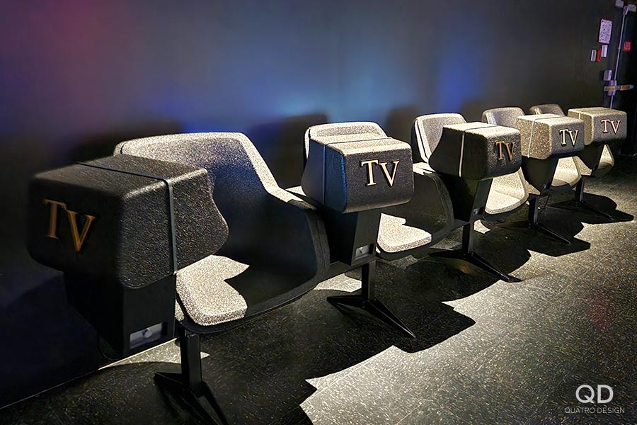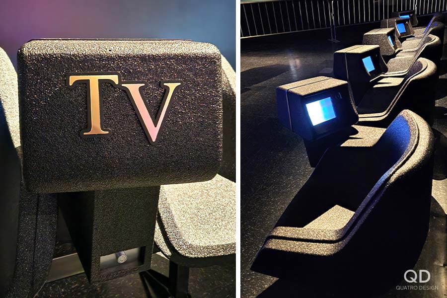 Nous avons réalisé plusieurs éléments pour l’exposition « Lutte. Le Québec dans l’arène » présentée par le Musée de la civilisation. Des maquettes grand format de théâtres reconnus (colisée, forum, tour), des reproductions de caméras de tournage et de bancs avec mini écrans de télévision, des arcades pour y jouer à des jeux de lutte et des grands personnages représentant les titans de la scène du combat. Pour la plupart de ces éléments de décor, nous avons dû faire des tests et des prototypes pour s’assurer d’avoir le produit final le plus réaliste possible. Il fallait également travailler étroitement avec notre client en vue de bien intégrer ses appareils techniques. Nous adorons ce genre de défi qui nous permet de réaliser des projets hors de l’ordinaire!