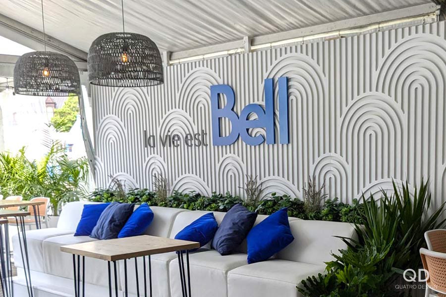 Ce lettrage en acrylique peint a été installé dans une des loges partenaires du festival d’été de Québec. C’est un moyen à la fois simple, efficace et esthétique d’identifier les commanditaires.