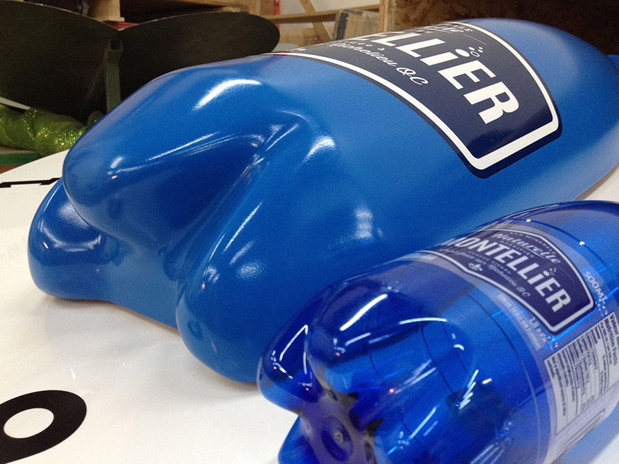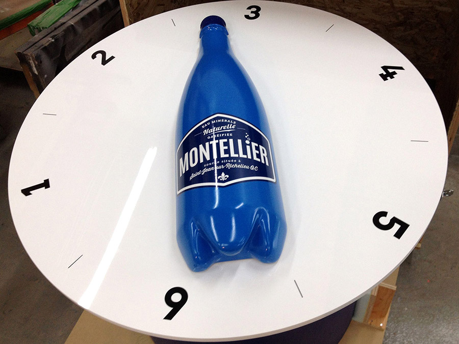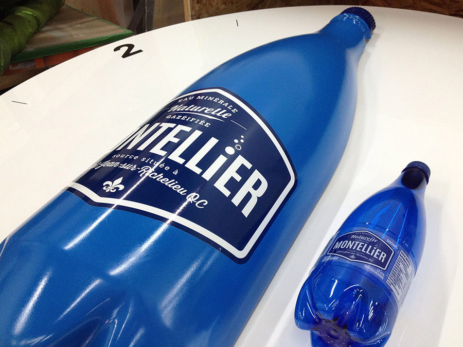 Jeu promotionnel pour les kiosques de l’entreprise Montellier, un outil de promotion qui frappe les regards! Grâce à notre système de pivotement conçu à l’interne, les visiteurs ont eu bien du plaisir à tourner la bouteille. L’objet a été sculpté numériquement en plusieurs étapes, alors que le fini est un mélange de peinture aérosol, de vernis lustré et de vinyle autocollant.