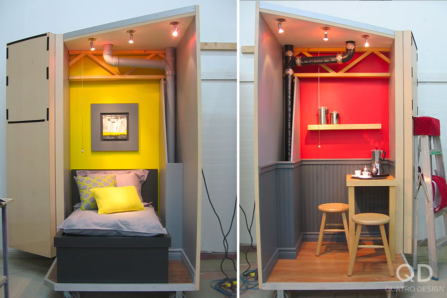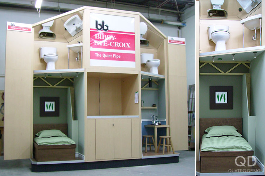 Présentoir sur plusieurs étages rappelant différentes pièces de la maison. Le client nous a même mandaté des années plus tard de rafraîchir le présentoir aux couleurs du jour. Nous sommes toujours heureux de voir que nos fabrications sont encore utilisées après autant de temps!