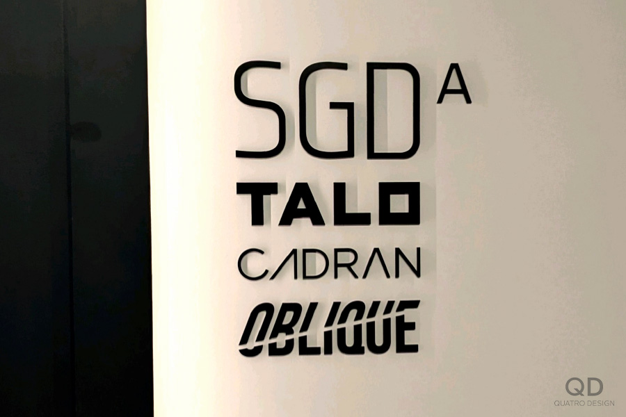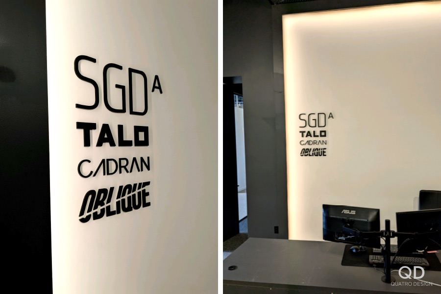 Voici un petit lettrage simple, mais qui donne un super effet avec l’éclairage déjà présent dans l’environnement du client. Nous pouvons découper avec précision toutes les polices de caractères que vous désirez pour faire une signature originale!