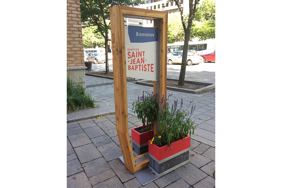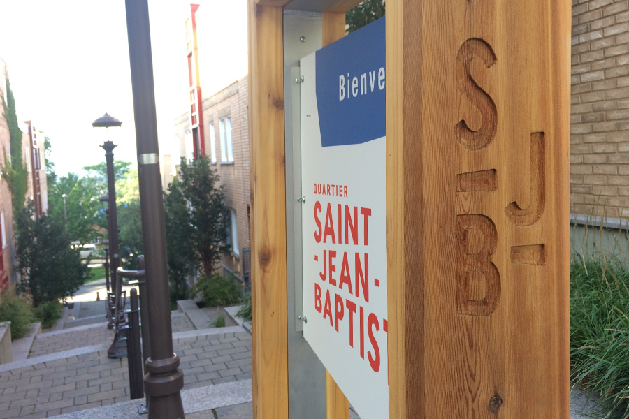 Conception et réalisation de quatre signalétiques pour le secteur Faubourg St-Jean. Bois massif, soudure et finition, un amalgame complet réalisé dans nos ateliers. Notre découpeuse numérique a aussi permis de graver le logo sur la structure.