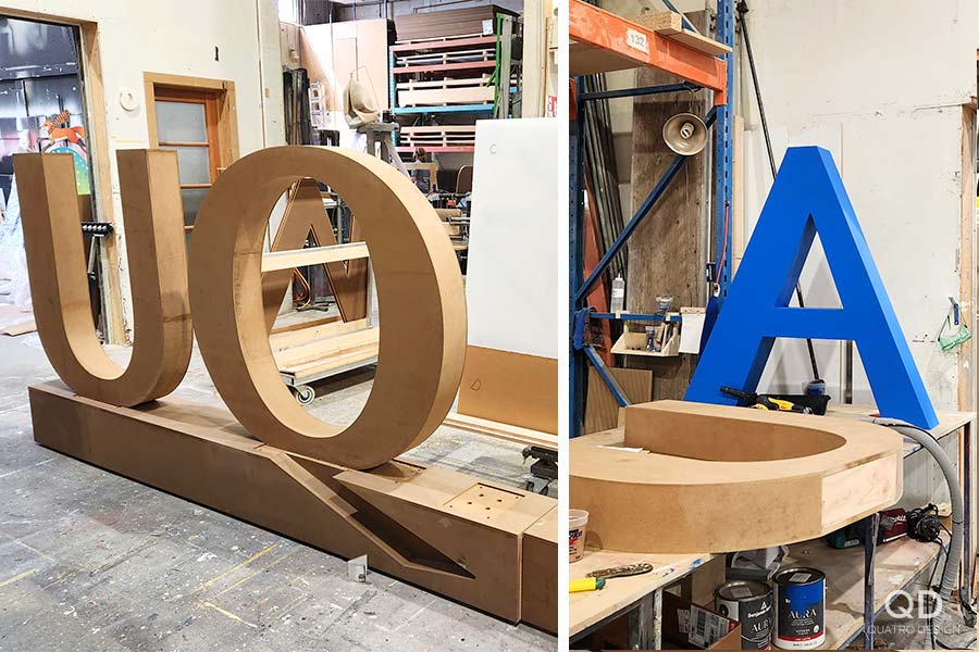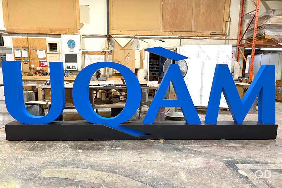 Un autre projet de lettres géantes signé Quatro, livré à Montréal! Pour les besoins de transport et d’entreposage, la base est divisée en deux parties et lettres sont dévissables à partir du dessus. Nous pouvons produire des lettres de toutes les grandeurs et de tous les styles pour ajouter du « wow » à votre événement!